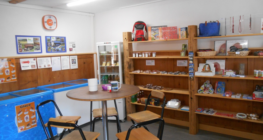 Ein Treffpunkt für Gäste und Einheimische: Der Kiosk und Hofladen Bazar liegt mitten im Dorfkern von Tschiertschen. Sie finden hier ein kleines Sortiment an Alltagsgegenständen, sowie regionale Produkte vom Bächlihof.
